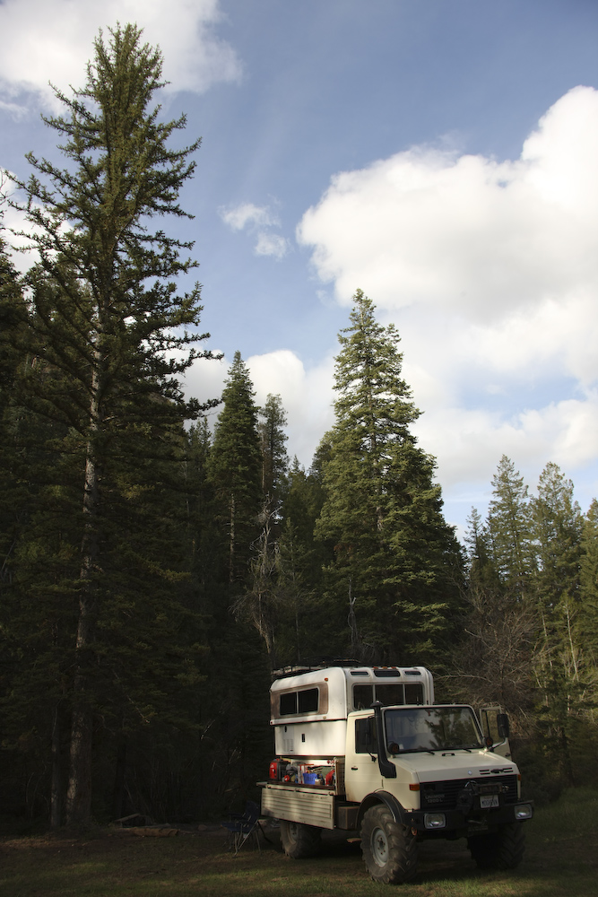 The dark clouds of the previous afternoon gave way to broken clouds in the morning. This is the view from the porch of our camper.