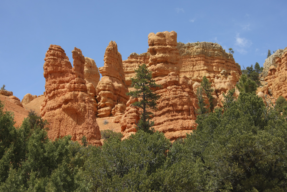 We stopped for lunch in Hatch and then took the turn on UT12 and headed east to Bryce. Just west of Bryce, the road heads through Red Canyon. These structures are at the mouth of Red Canyon.