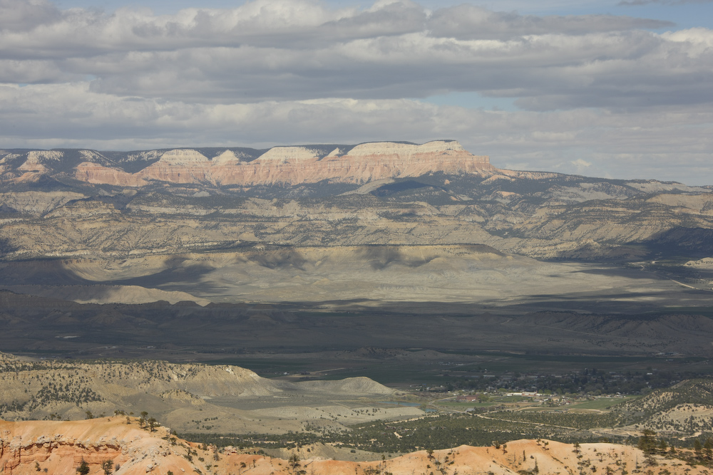 Table Cliffs on the skyline with the little town of Tropic in the valley.