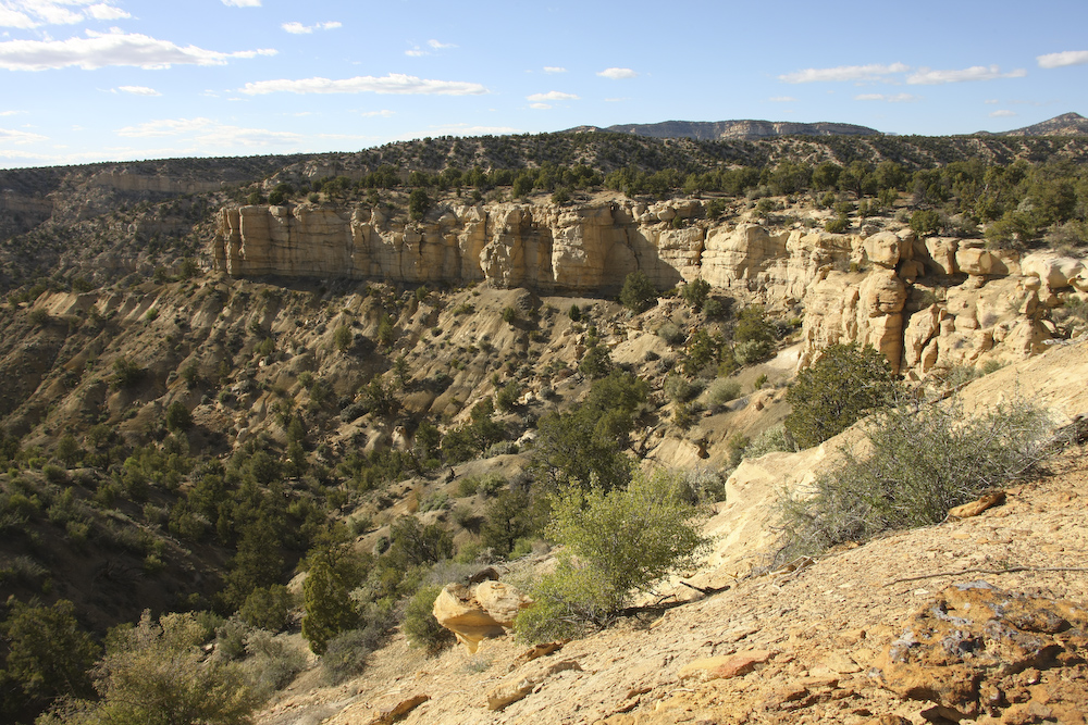 From the crest at the top of the canyon the distant structures of Griffin Top and Barney Top can be seen.