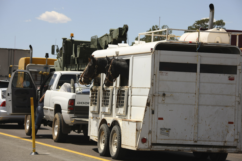 The folks in front of us were trailering 3 horses that were only too happy to have the doors of the trailer open so they could look around.