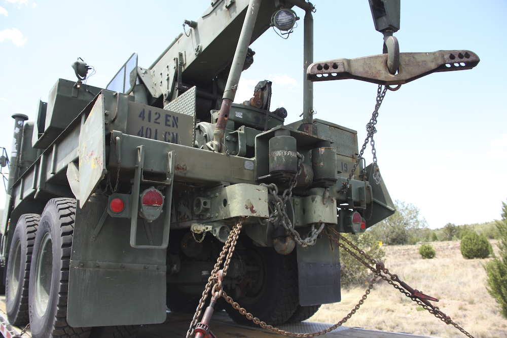 Page is a small town and there were no other alternatives. Plus, I would concerned that if I removed the ratchet straps, I may not be able to get them back in place. After inspecting the straps, I determined that I could not get them off without cutting them. So, in the end, we decided that the best case would be to attempt to drive it back to San Diego. Along the way, we met a member of the local police force and he suggested that we speak with one of the better truck mechanics in the area. He had his dispatcher call him and he came to us. But, it there were bad vibes from the get-go, so we discussed it and decided that the only rational thing to do was to drive home. If the truck failed along the way, then hiring a truck to transport the mog back to SD was still an option. An expensive option, but still an option. So, we bought a full tank of diesel, some fresh Gatoraide and hit the road south. It took us 3 days to get back, but we did not suffer any further failures. It was hot, really hot, but the truck behaved. The photos below are what we saw.