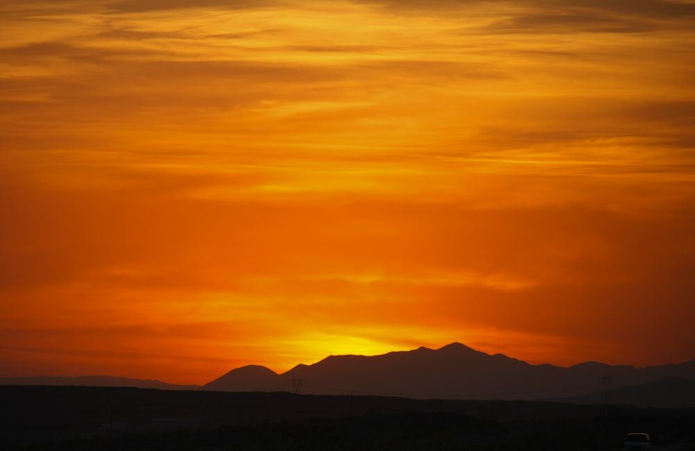 A pretty nice sunset taken from the side of the road outside of Barstow, CA.
