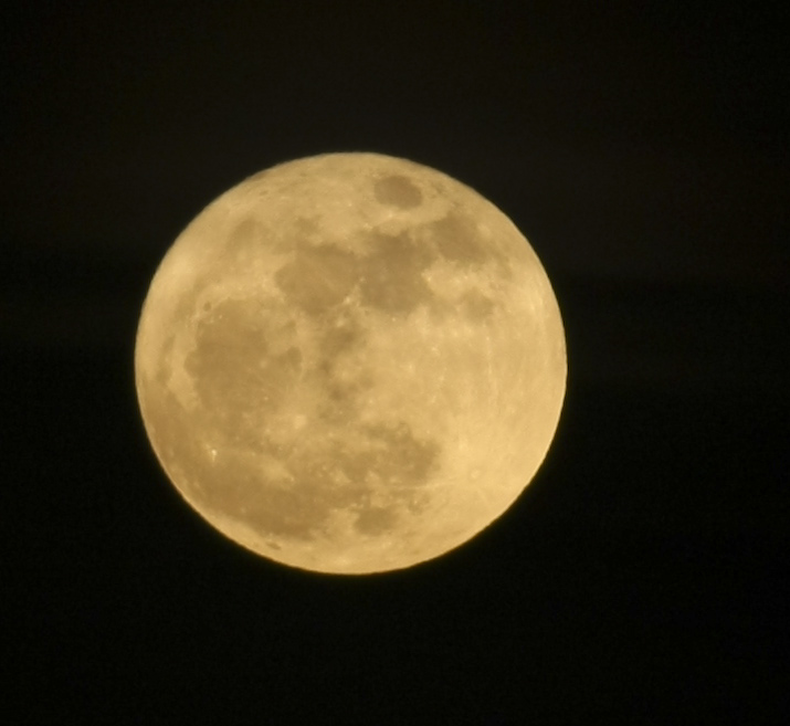 Finally, the full moon. It was somewhat hazy, thus explaining the lack of sharp focus. Remarkably, this was taken from the parking lot at the local Taco Bell.
