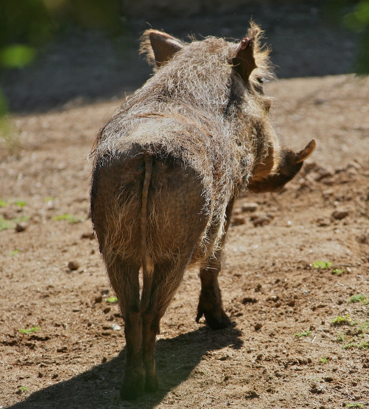 This is the better-looking end of the wart hog. He would not turn around, so I assume it was his own method of protest. Look at the tusks on this fellow.
