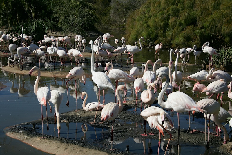The park has a substantial population of flamingoes.
