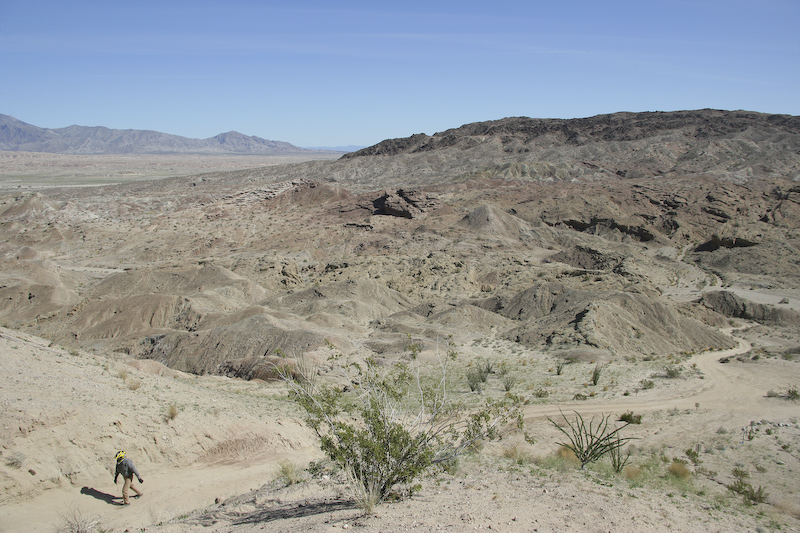 From the crest in Inspiration Canyon, you can see Toro Peak to the north and Clark Dry Lake at it's base. Toro Peak is over 8K feet high and gets substantial snow in the winter.