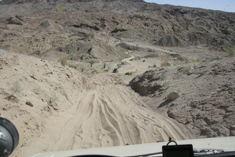 The view out the windshield of my mog during the drop-off. While it did have deep sand and deeper ruts, it was not all that challenging.