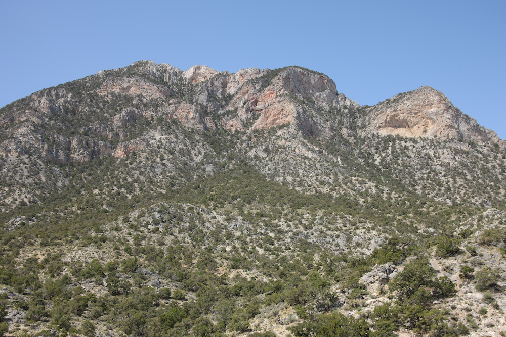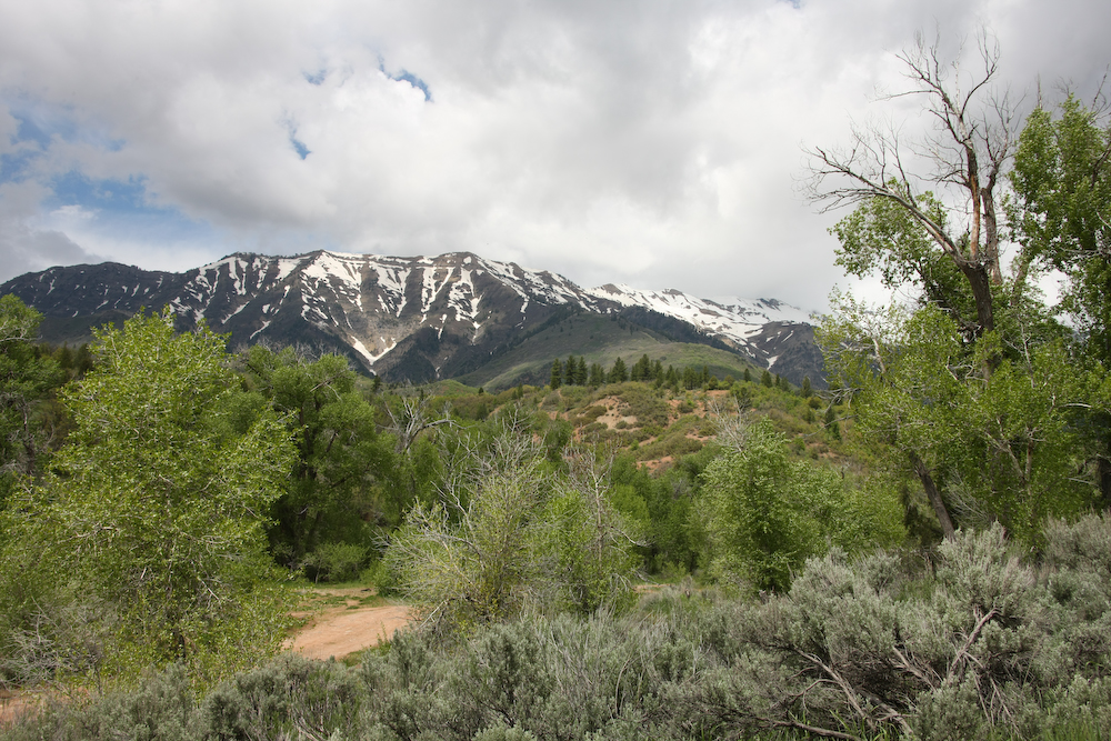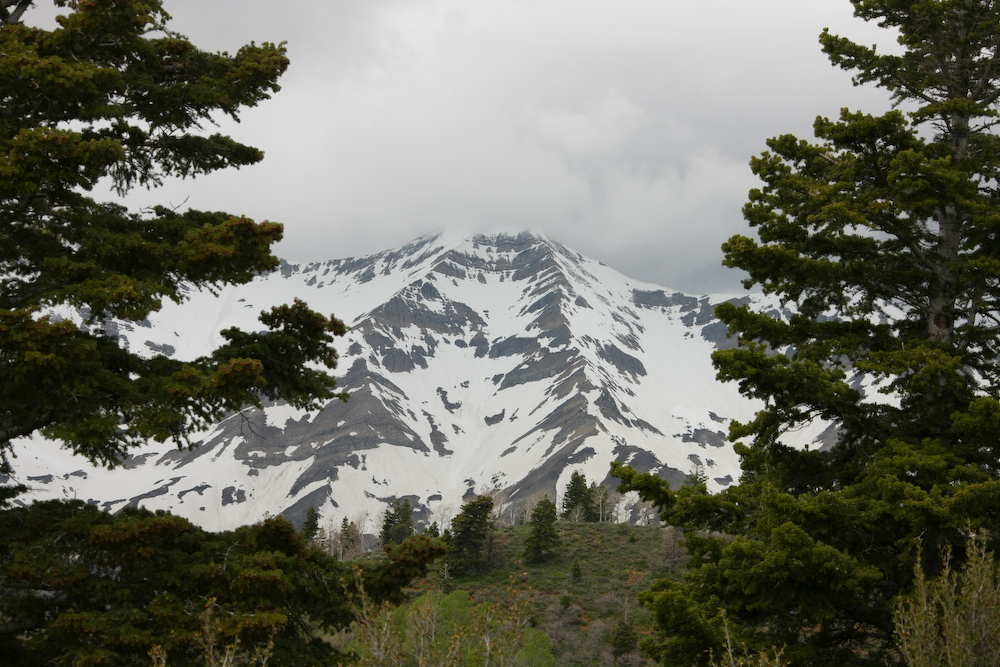 The nearly 12,000 foot Mt. Nebo is visible between the trees.