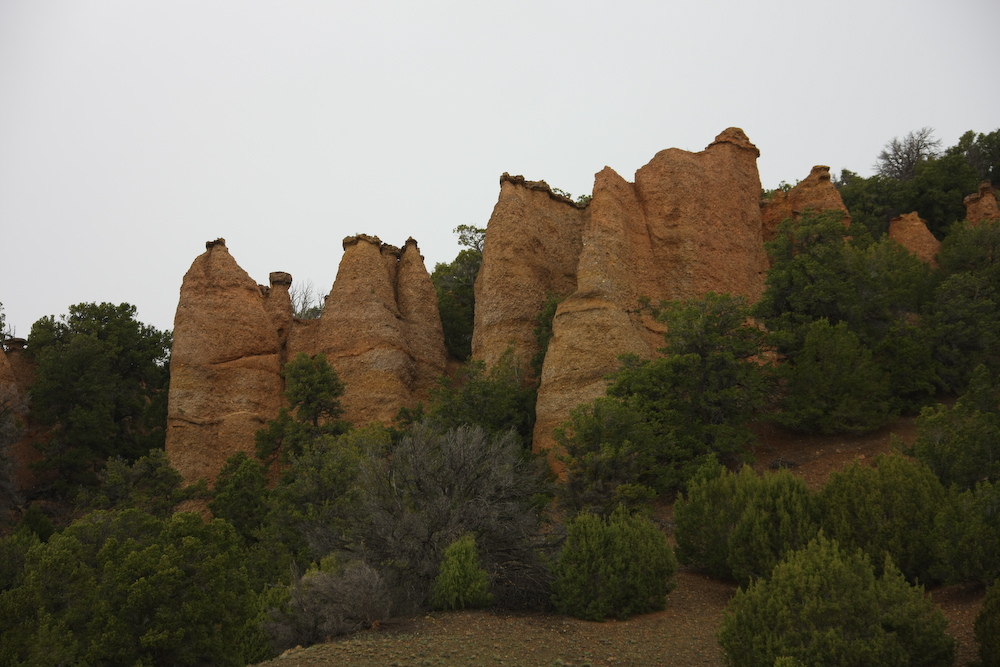 On the western approach to the plateau, we passed these hoodoos. The rain continued as we gained in altitude.