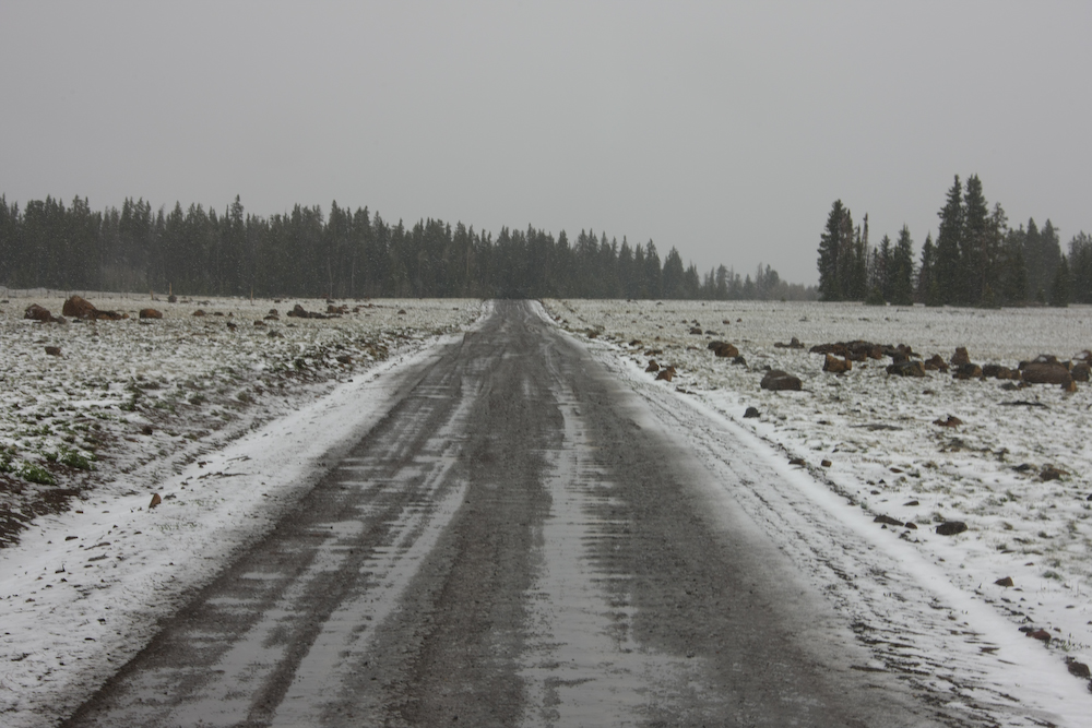 At the top of the plateau we were at about 11,000 feet and the terrain looked like the arctic. I had not planned on snow. Rain, yes; but not snow.