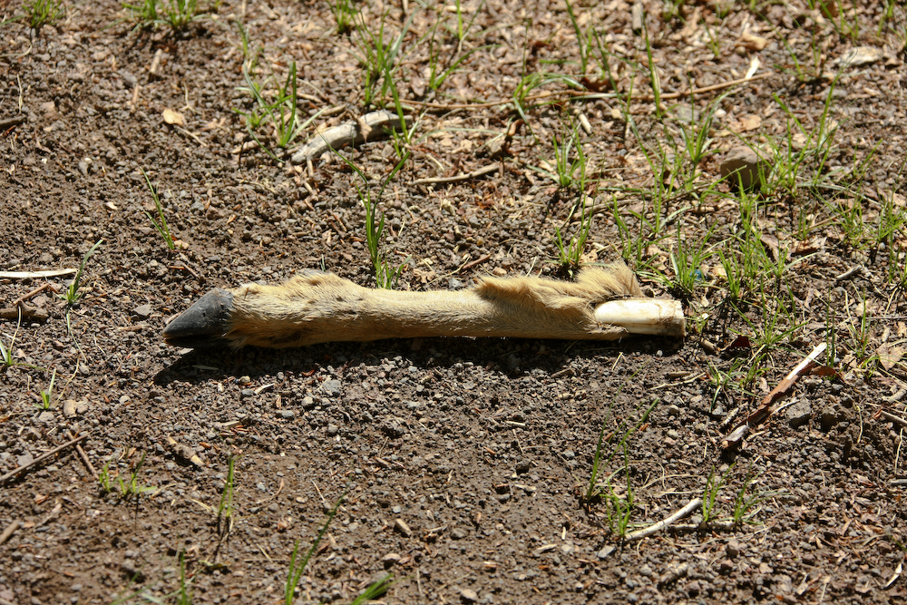 Oh dear, it's a deer! When we finally chose a camping location, I found this sawed off deer leg near the fire pit. This was clearly left over from a butchering session the previous hunting season.