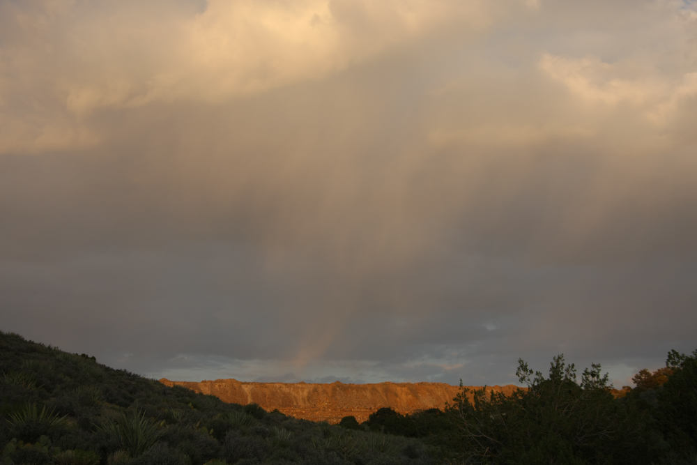 To the east of our position, rain clouds were brewing. The flat line on the horizon is tailings from a close mine.