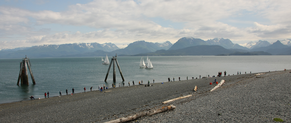 The Homer Spit is in the center of the photo. Homer has great views of the glaciers and claims to have the best halibut fishing in the world.