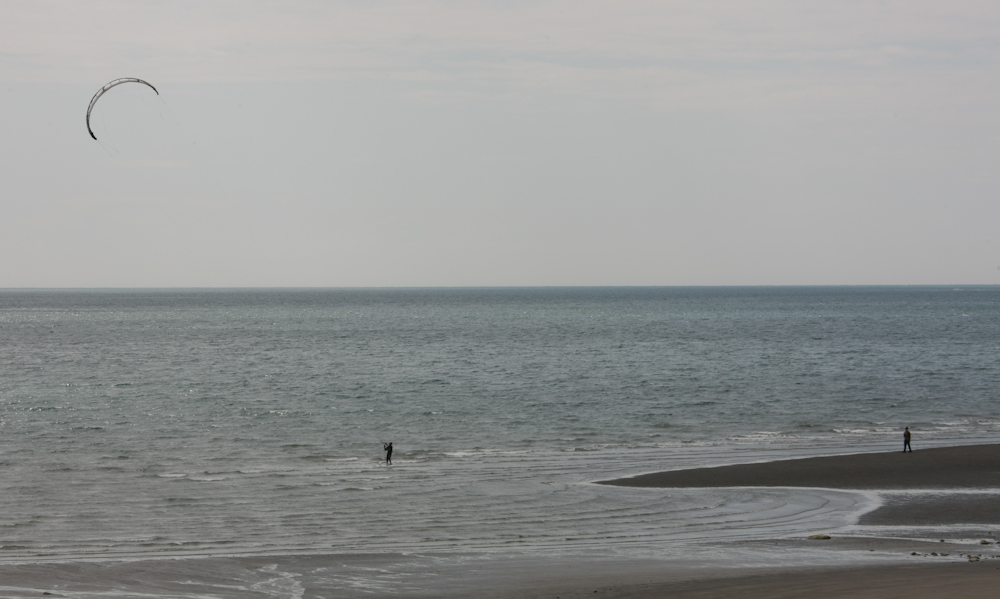 When we got to our camp site, we went to the beach to see what was happening. Looking south, we could see a small bay with tons of driftwood.