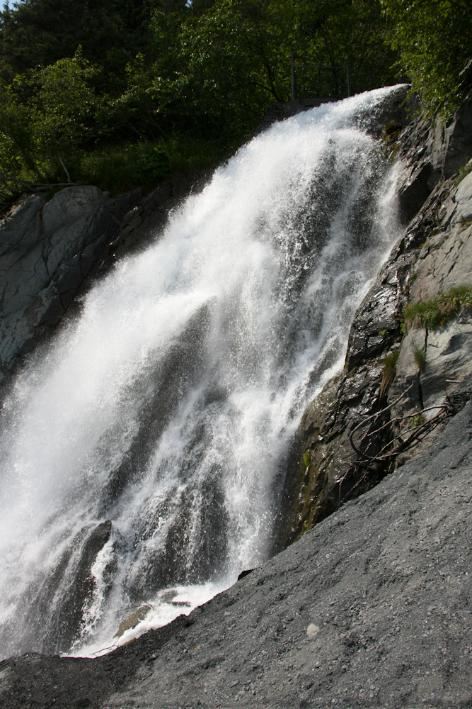 South of Seward, we spotted this nice waterfall coming down the cliffs right into the ocean.