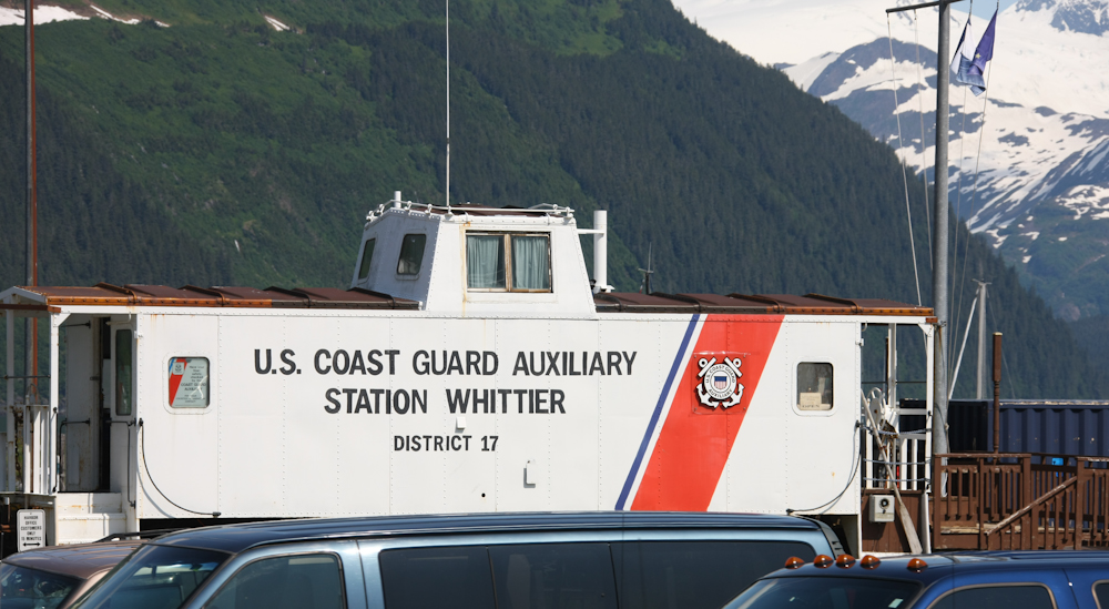 Did I mention that Whittier is small? How small? So small that the coast guard office is this old railroad caboose.