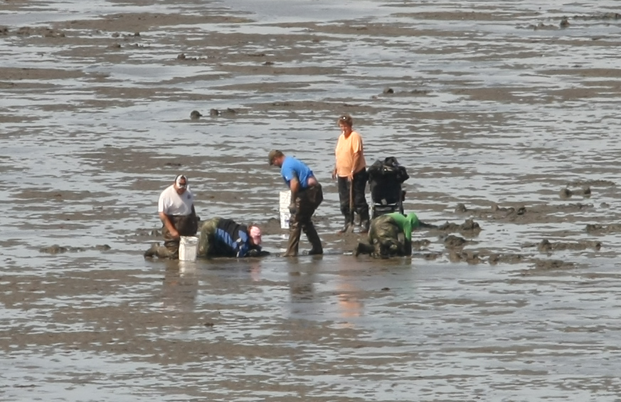Power clamming at Clam Gulch. One fellow is up to his elbows, literally. The low tide allowed going after the large razor clams.