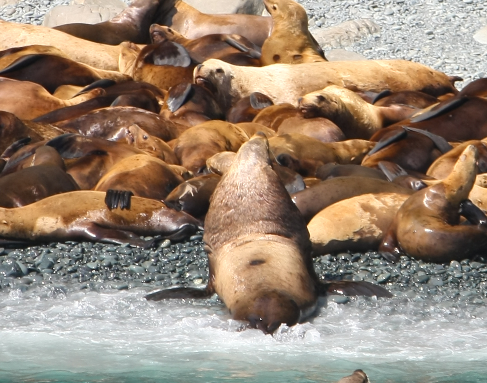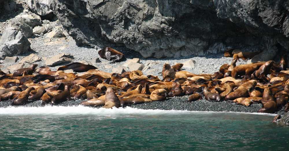 The captain of the tour took us to a beach that was known to be a hang-out for the Stellar's Sea Lions. There were a whole colony of them on the shore getting some rays in the mid-day sun.