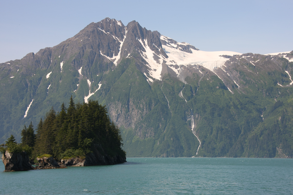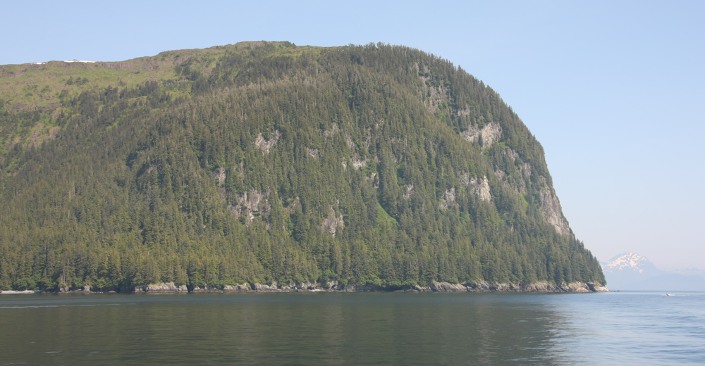 The headlands of Glacier Island. The guide stated that geologists had determined that the composition of the island was identical to the rocks in California and not similar to local rocks. The conclusion is that it has drifted north over the years.