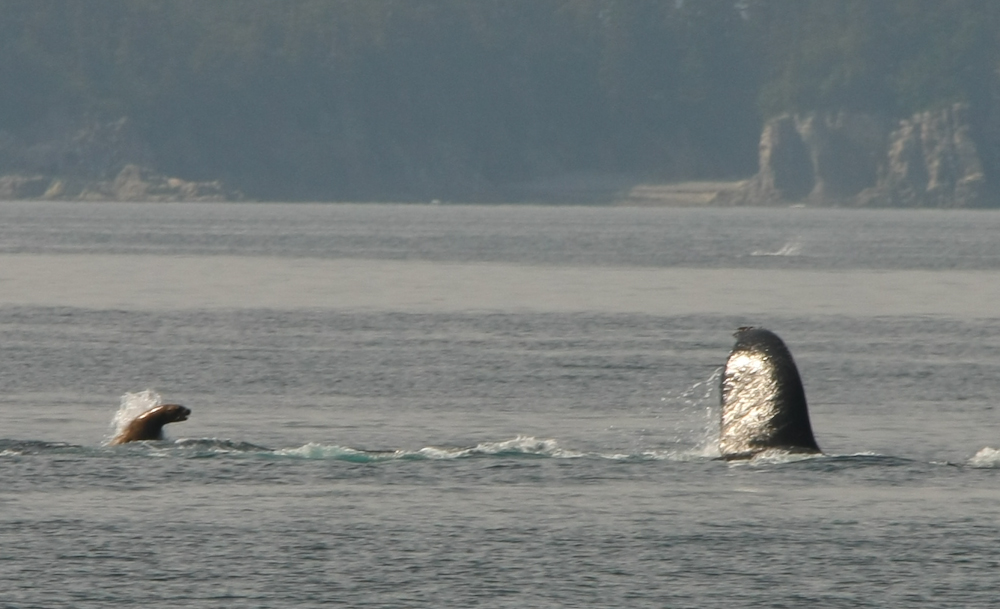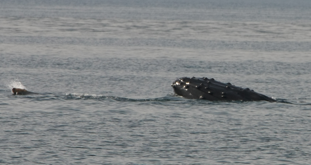 The whales were stirring up the food, so there were plenty of sea lions in the area feeding on the leftovers.