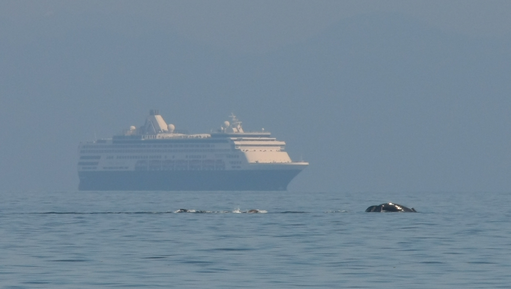 The whales were pretty close to the boat, perhaps 100 meters away.