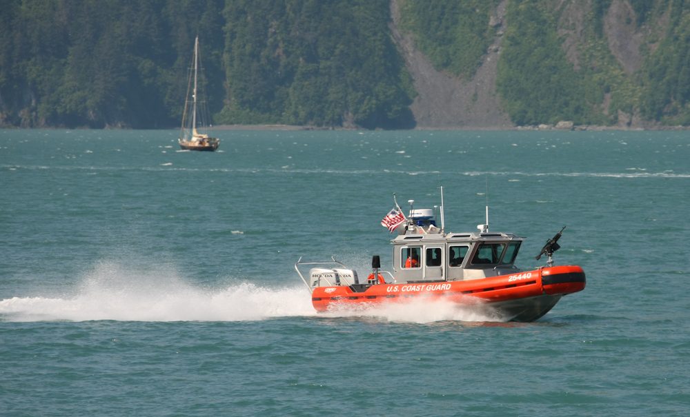 One of the many Coast Guard go-fast patrol boats that cruise the sound.