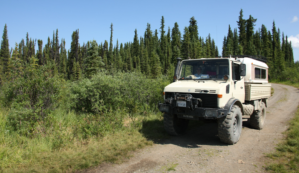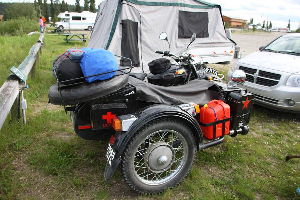 We continued south to Teslin, YT and stayed in an RV campground so we could shower and fill our water tanks. The shot above is for my buddy Kai who also has a Ural. This fellow was from Edmonton, AB and given the winch on the front, has seen a few problems off road.