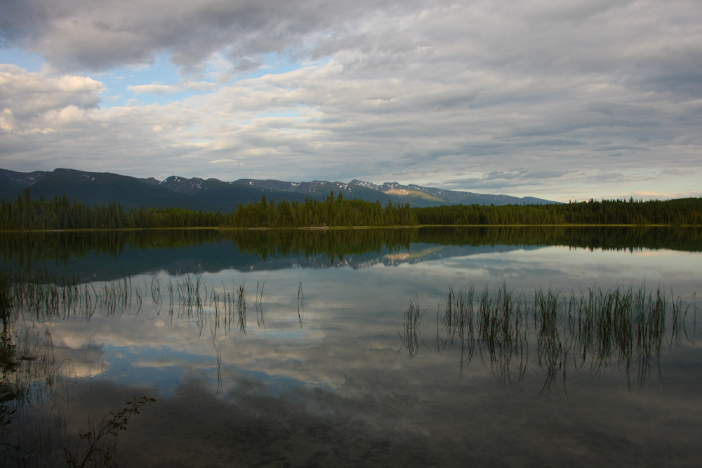 We left the main Alcan highway and turned south on the "Stewart-Cassiar" highway. We continued south until we hit Boya Lake and stayed there for the night. The calm waters provided nice reflections of the mountains beyond. Nice scenery notwithstanding, Boya was off the charts on the bug scale. We installed a mosquito canopy INSIDE the camper cabin and in the morning there were perhaps 500 of the little beasts in the cabin. They had somehow found a path inside. We later discovered that one of the screens had come unseated, leaving a wide gap for the bugs. If it were not for the canopy, we would have been drained dry by morning.