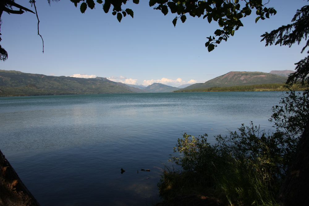From there, we continued south on the Cassiar highway to Lake Kinaskan where we spent the night. The shot above was taken from the back porch of the camper. The camp site was nice, but also very buggy. We put the mosquito net up again and were better about sealing the camper cabin and no real issues with the bugs until we came out from the net in the morning. This time, there were dozens in the cabin, not hundreds. But, our electronic hand-held bug zapper made short work of the little pests. There is nothing like the thrill of watching the bug sparkle and pop as the current vaporizes his body (containing, I am sure, some of YOUR precious bodily fluids).