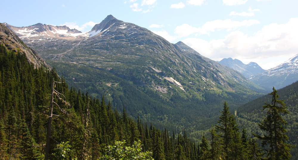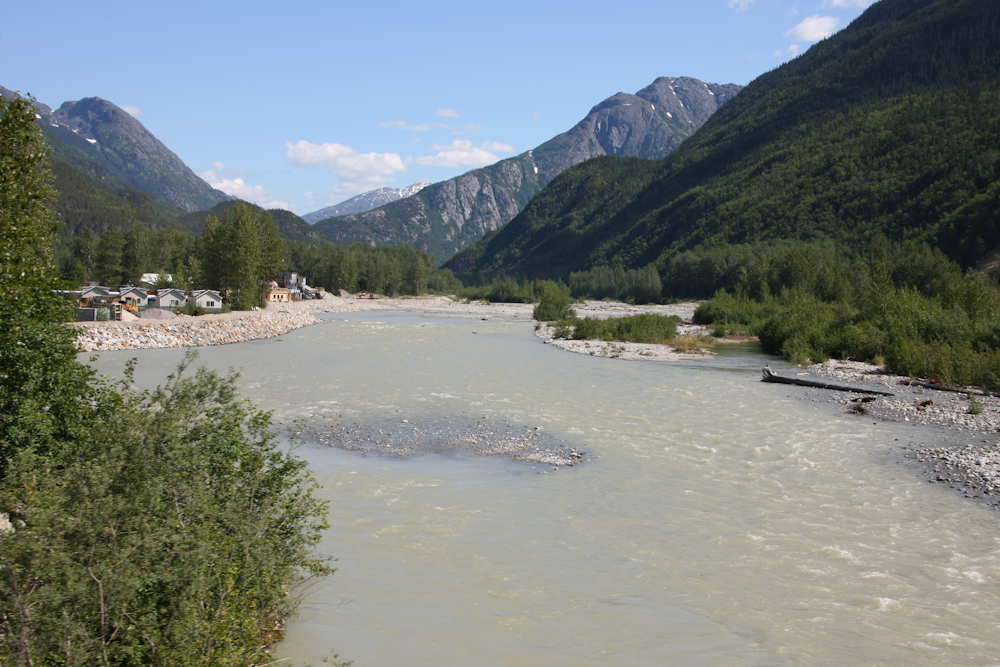 On the way out of Skagway, we crossed over the Skagway river and could see the mountains to the north on Chilkoot Pass.