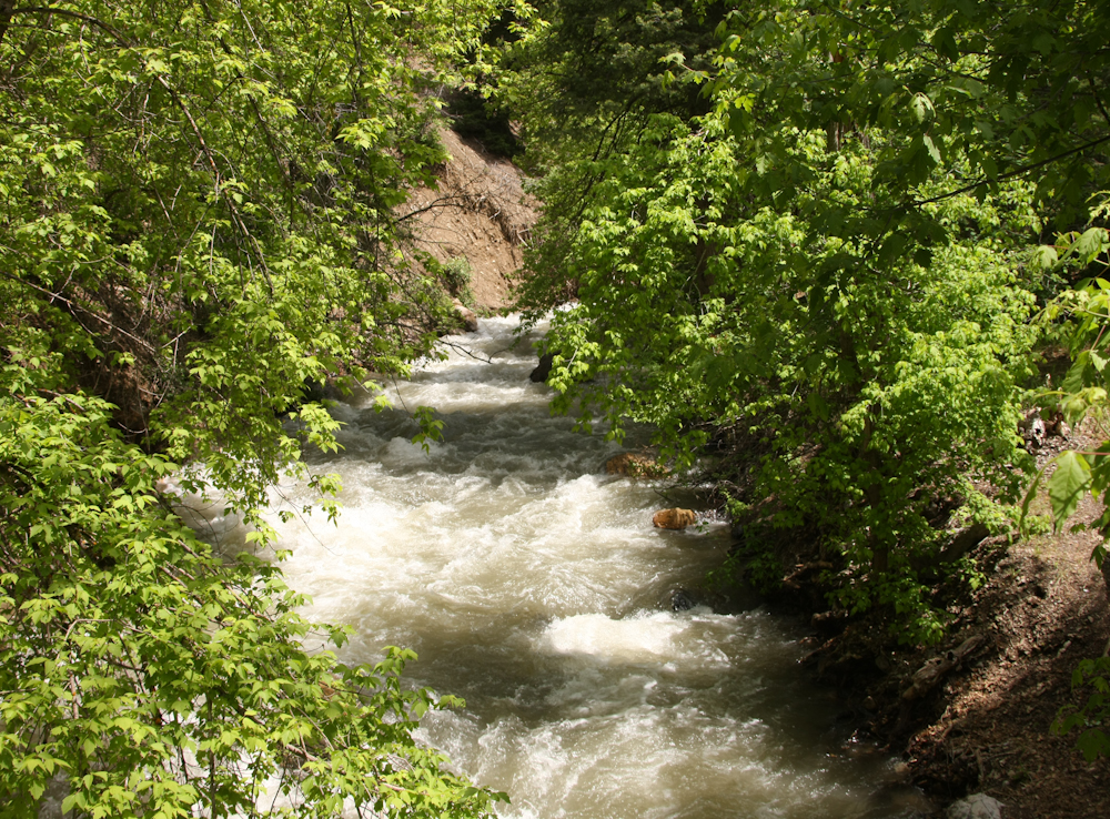 The American Fork river was churning with spring runoff. These waters are fast, cold and very dangerous. From Timpanogos, we headed north along I-15 toward Logan, UT.