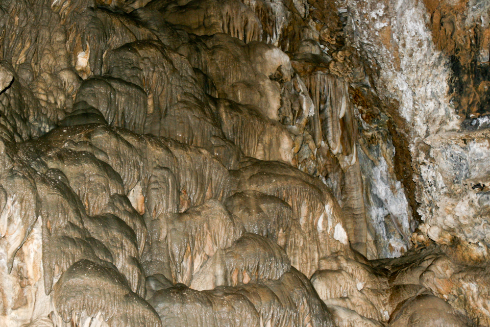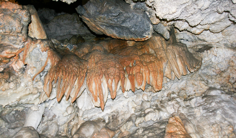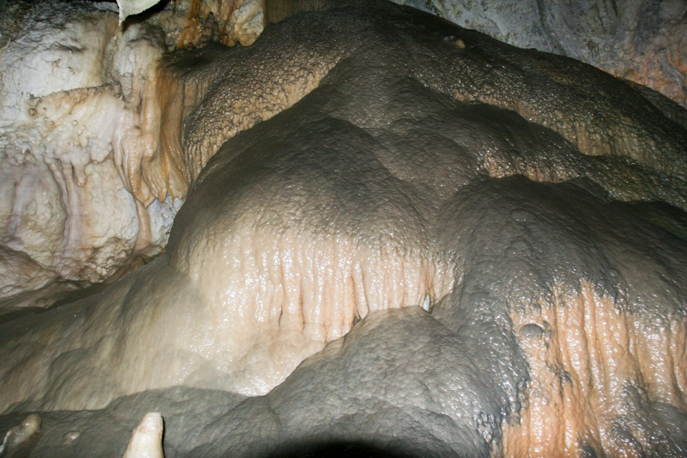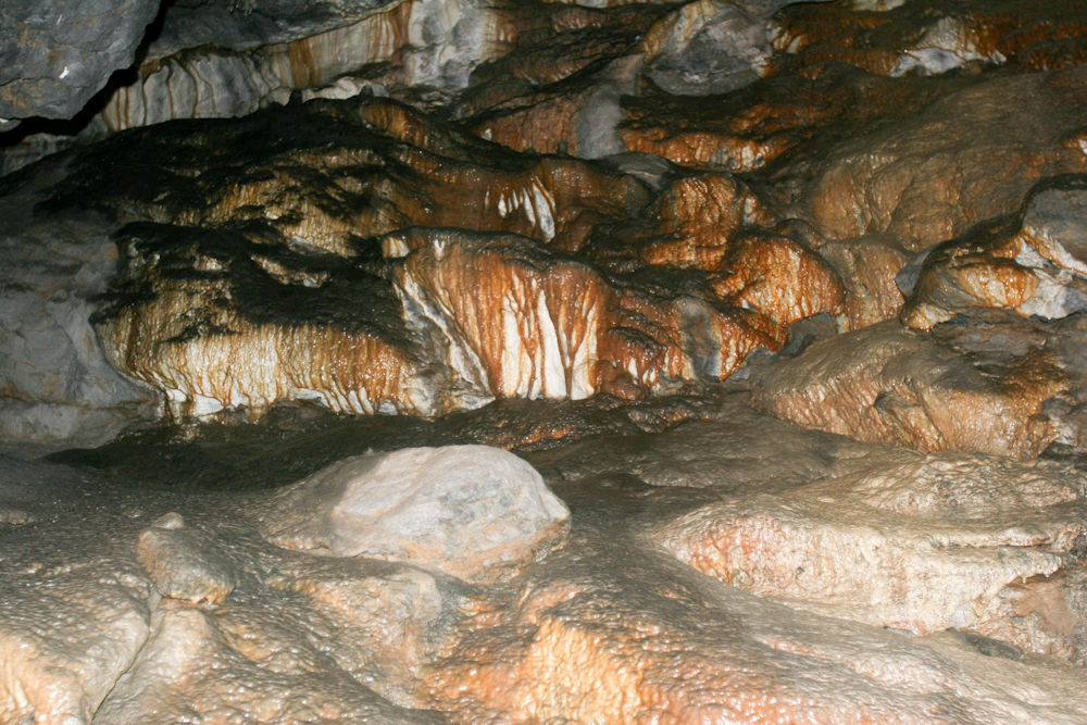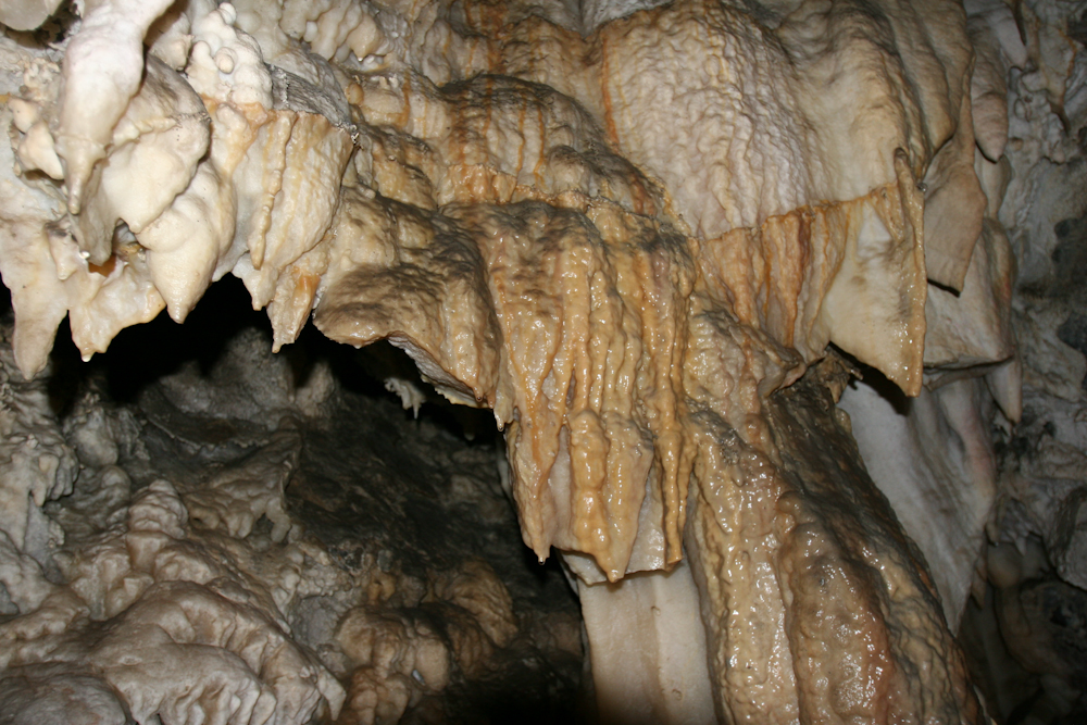 Many of the flow stone structures were tinted as well. Some looked like chocolate sauce on ice cream.