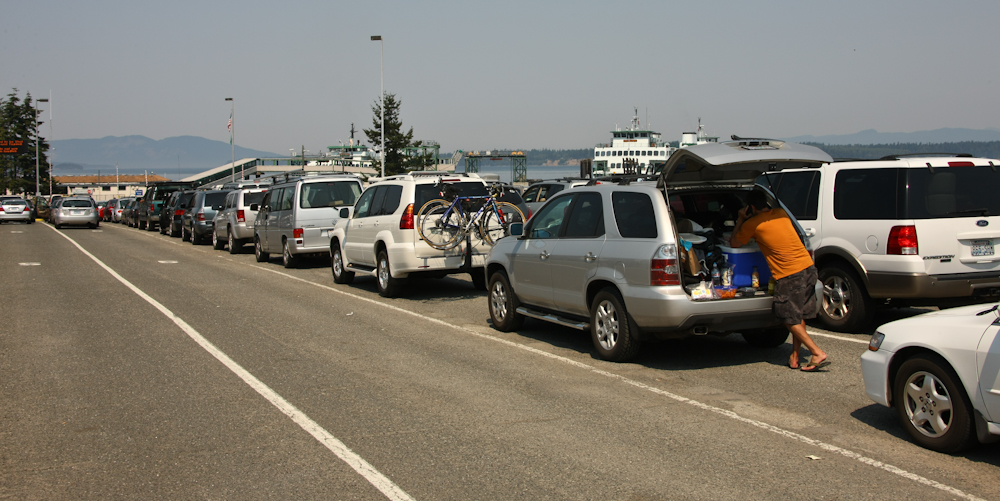 From Bellingham, we decided to head back into Canada. So, we packed and drove to Anacortes, WA and took the ferry over to San Juan Island. From there, our plan was to continue on to Sidney, BC. Above, you can see the cars lined up for the ferry to San Juan.