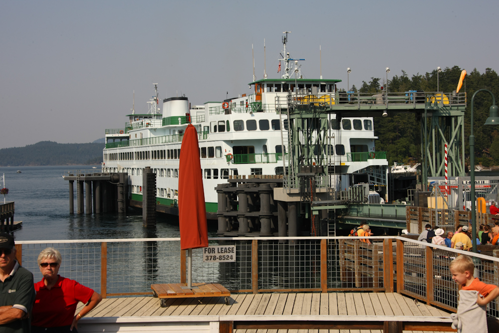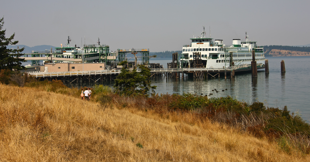 Washington State runs many ferries to and from the islands. Above, 2 ferries are docked and loading at Anacortes at the same time.