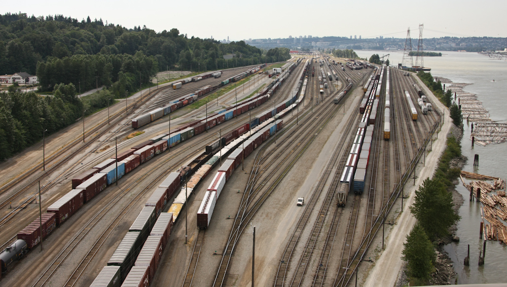 From the crest of the Fraser bridge, we could see the Vancouver rail yards. We had passed through here in 2007 as part of our trans-Canada rail tour.