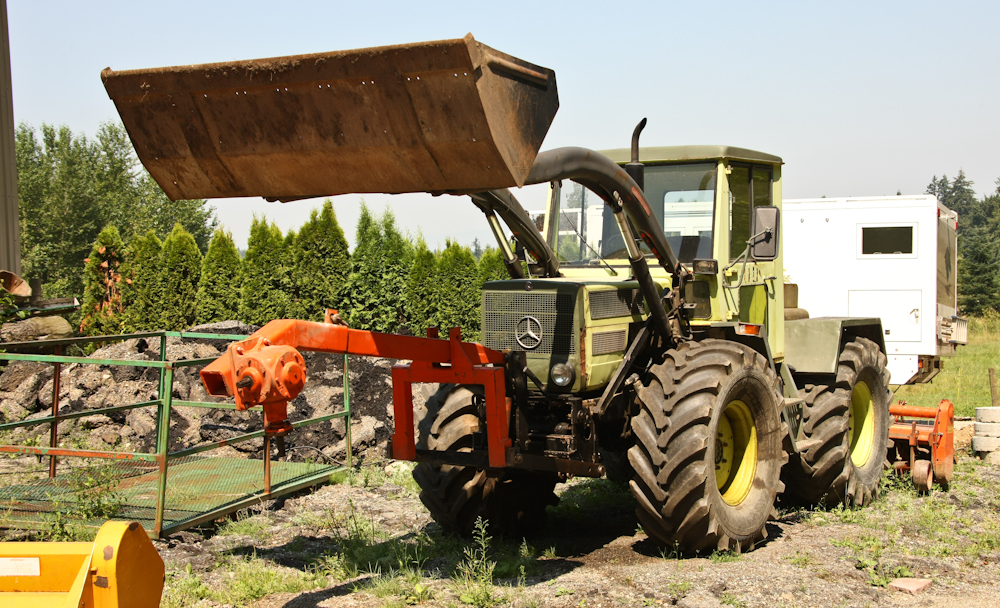 I needed to do an oil change, but only brought one filter. I was told that Hans Mross was close by, so we visited his facility. I got what I wanted as well as some other spare parts that might come in handy. As we will see in the following part, no amount of spare parts would have helped our situation. Above is a MB-Trac tractor from Mercedes that Hans had at his facility.