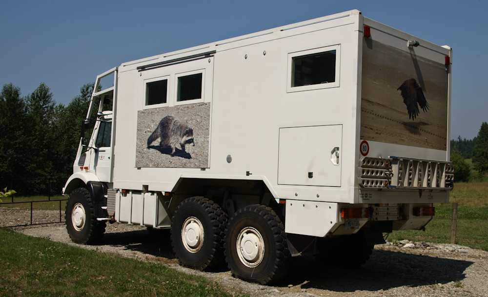 This is a big rig that weighs in at about 30,000 pounds. The camper is a Unicat model that is custom for this chassis. This thing is a beast!!
