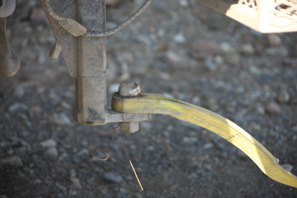 He allowed slack in the line to get under the wheels of his rig thereby damaging my tow strap.