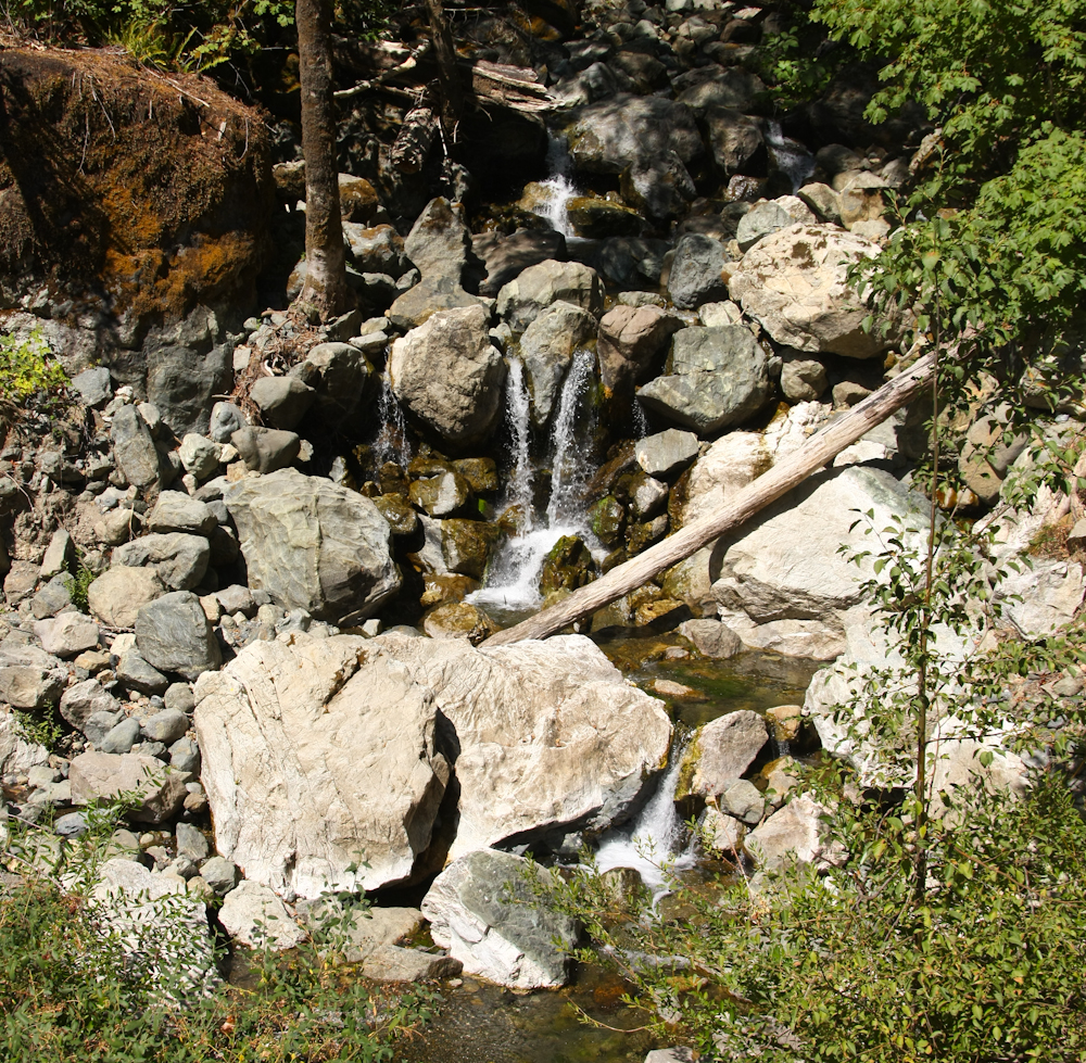 Close to CA 89 at Mud Creek, we passed a good-sized water fall that was popular with the swimmers. These young bucks, full of derring-do, jump into the pool. Jumping into creeks is not advised unless you know what is under the water. Many folks have been injured performing that very trick.