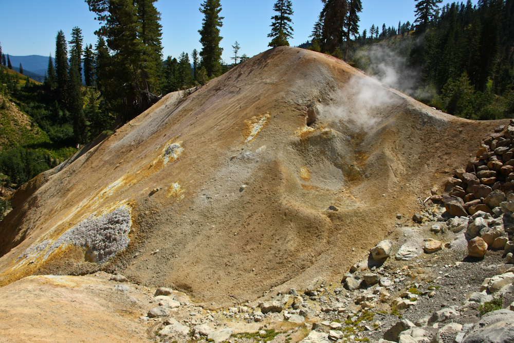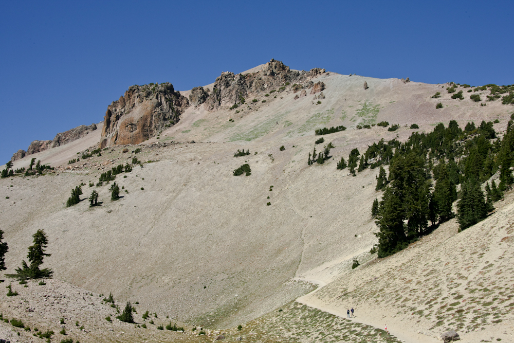 A pull-out at the summit provided a clear view of the peak of Mt. Lassen. Above, the trail to the peak is clearly visible.