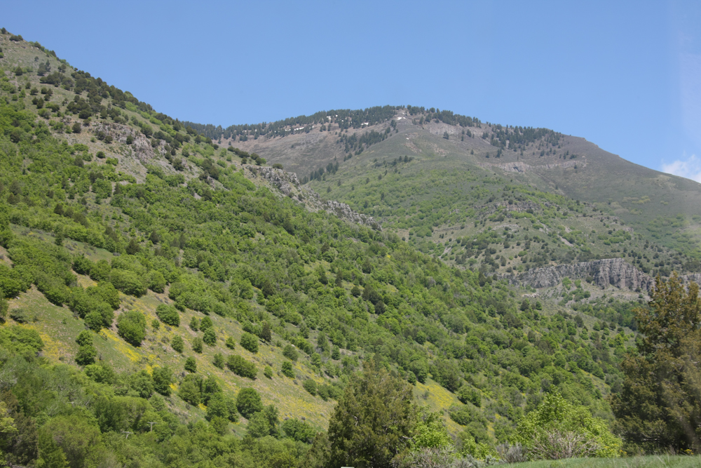 Our path out of Logan, UT took us through the canyon created by the Logan River. The canyon was deep and some of the peaks still had snow.