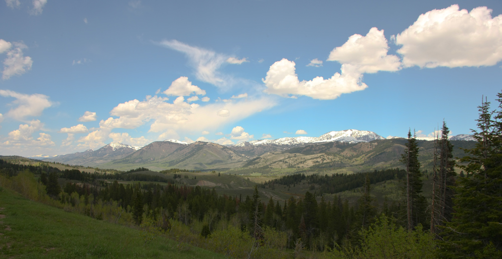 We stopped for supplies in Jackson, WY and then headed north over Teton Pass. The approach to the pass gave us great views of the Teton range.