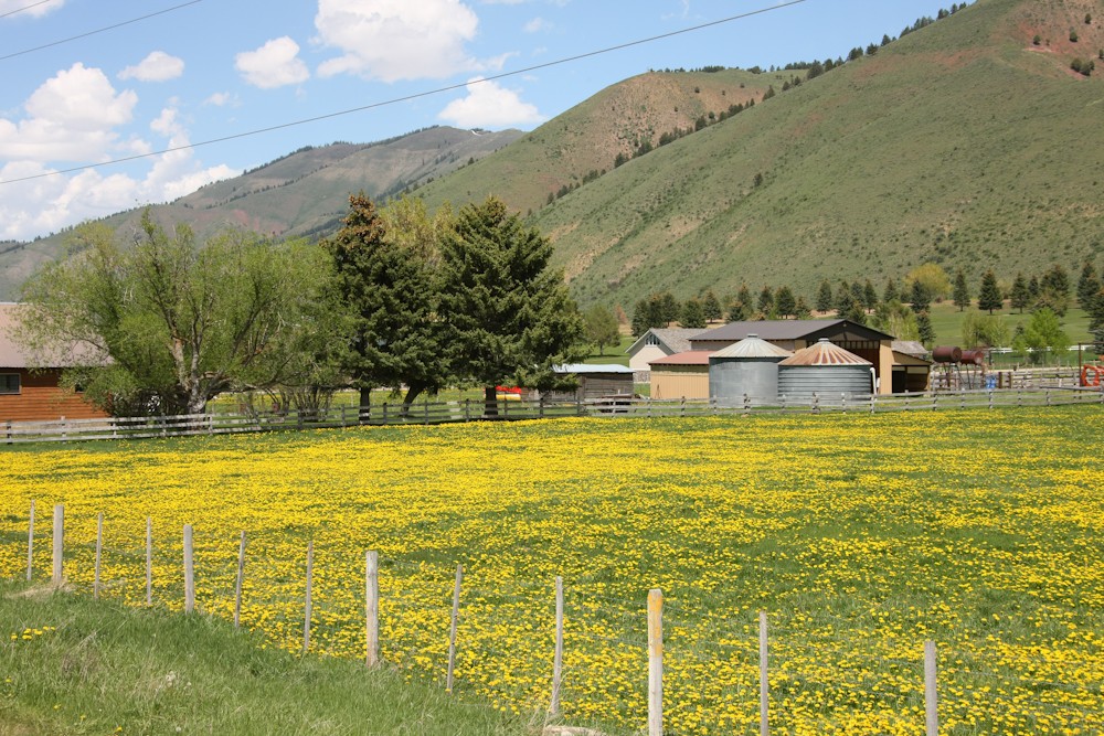 This is one definition of heaven - horses in flower covered field with snow-capped peaks in the distance.