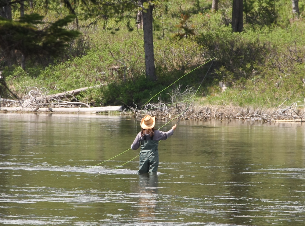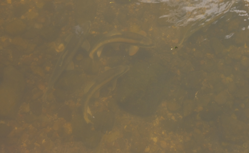 We stopped at Mack's Inn and went out on the bridge over the Henry's Fork to see the fish. Above, you can see 18" trout just hanging out in the water under the bridge. These guys were big but not hungry. They generally ignored the hooks that were being cast their way.