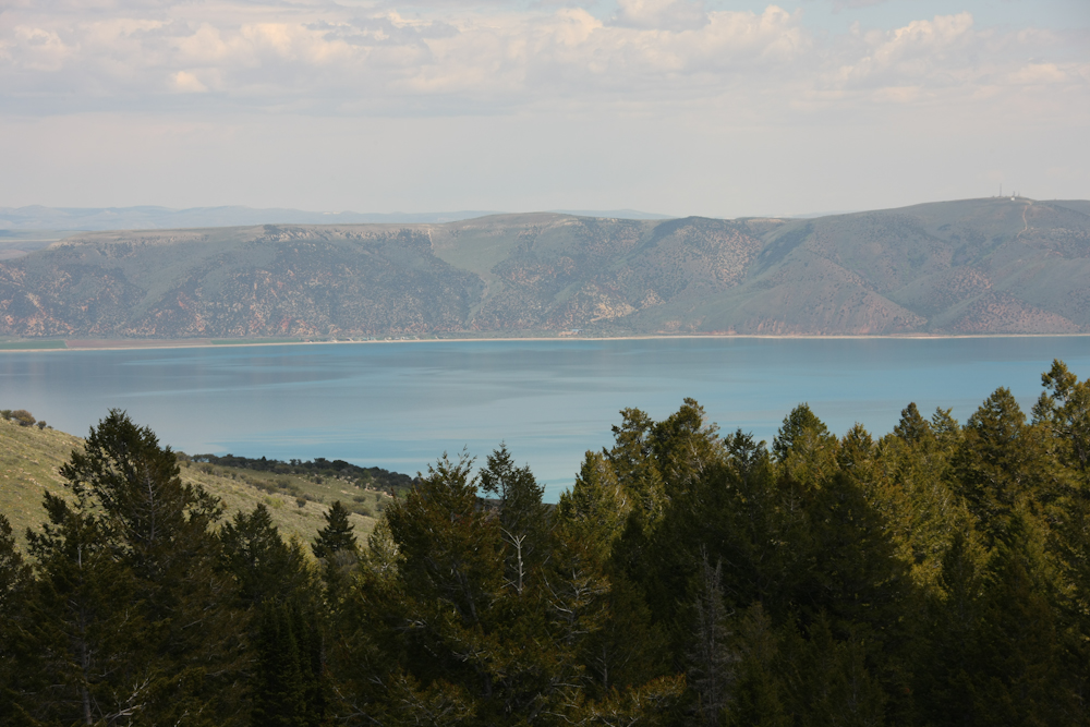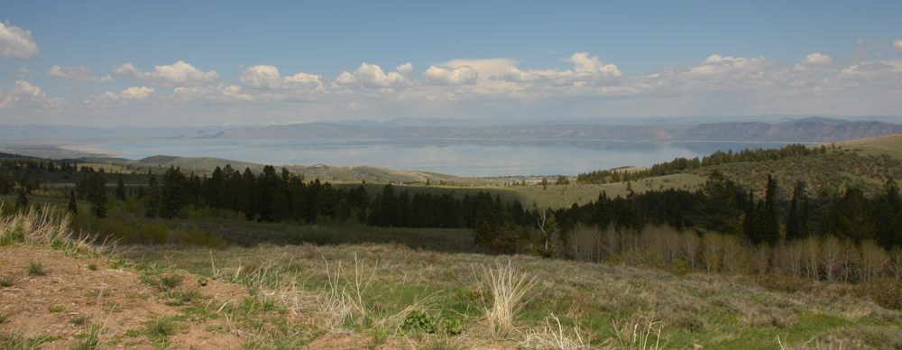 After a great visit in Logan, UT, and with advice on the best sites to visit from Jud, we headed north toward Bear Lake. We were told that the local treat was the raspberry shake, so we had to stop and get one. They were indeed tasty. And what better to have with a shake but a burger and onion rings? There were no camp sites on Bear Lake that we deemed acceptable, so we headed north along the western shore to find something suitable. Many thanks to Jud and his wife Sadie for their hospitality and a great dinner.