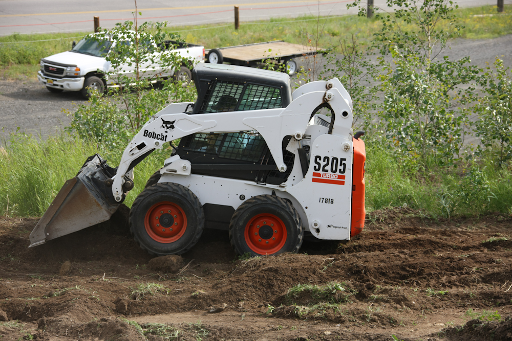 Dan and Janet were doing some landscaping so he had to bring out his boy-toy to assist in the efforts.