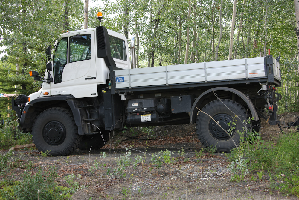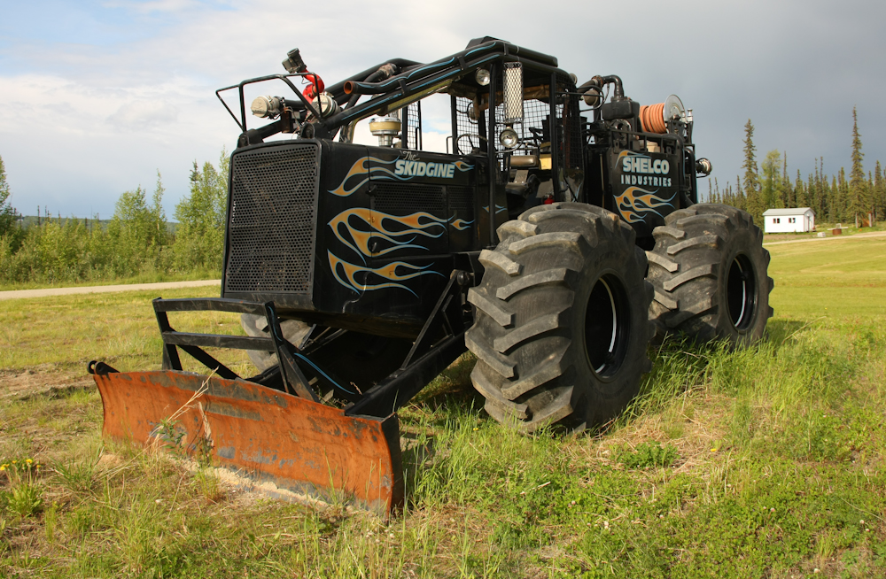On the way back to Fairbanks we spotted this fine, custom piece of equipment. This was a logging skidder that was modified for fire control. These tires were filled with water to provide weight and traction.