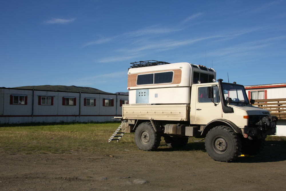 We arrived at Coldfoot Camp and got what we needed: diesel, ice, food and a flat place to set up the camper. In the background of the photo above are the hotel "suites" that were left over from when this was a construction camp. The quarters are basically a bunch of mobile homes bolted together.