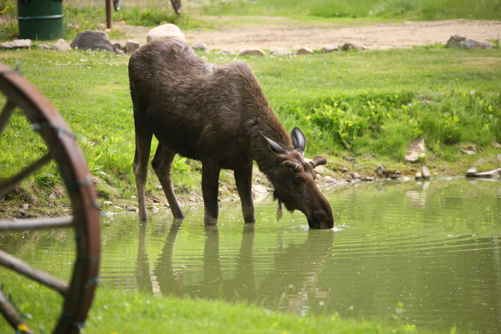 As we left the energy production facility, we spotted this moose that came down to drink at the pond.
